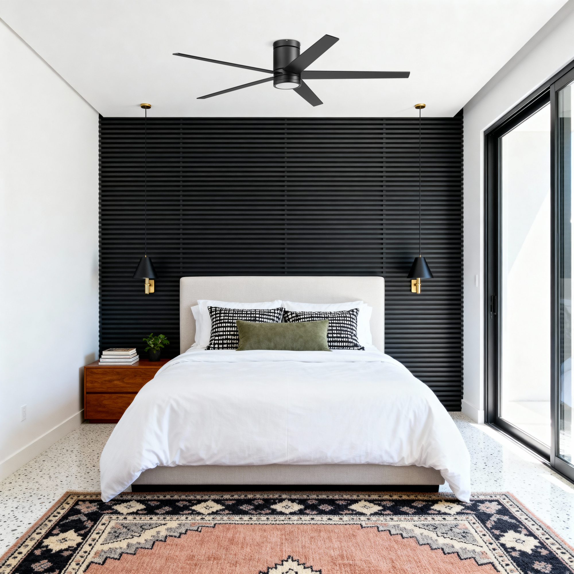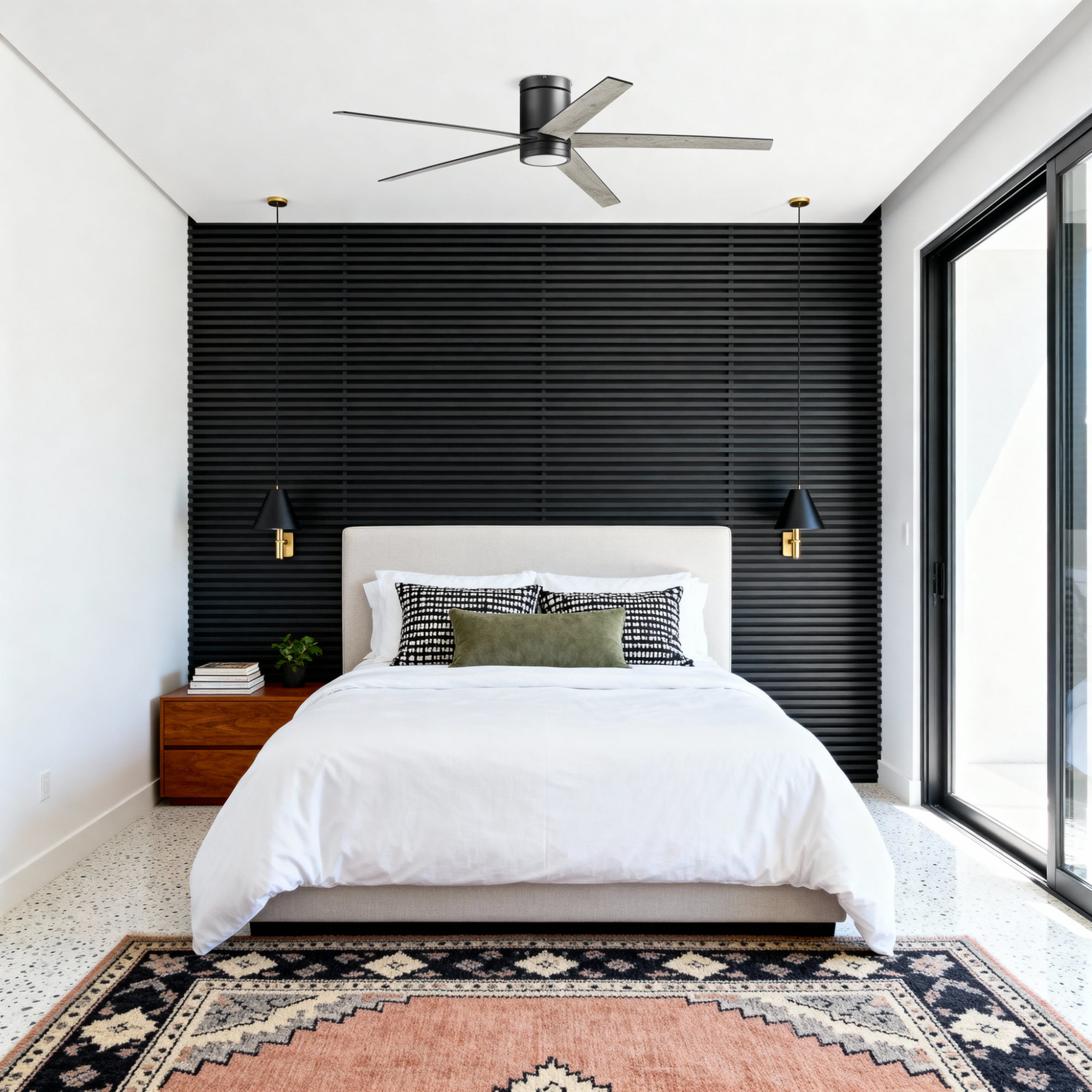 - Flush Mount Ceiling Fan: Chic low profile, hugger mount design built for rooms with low ceilings or where extra space is needed