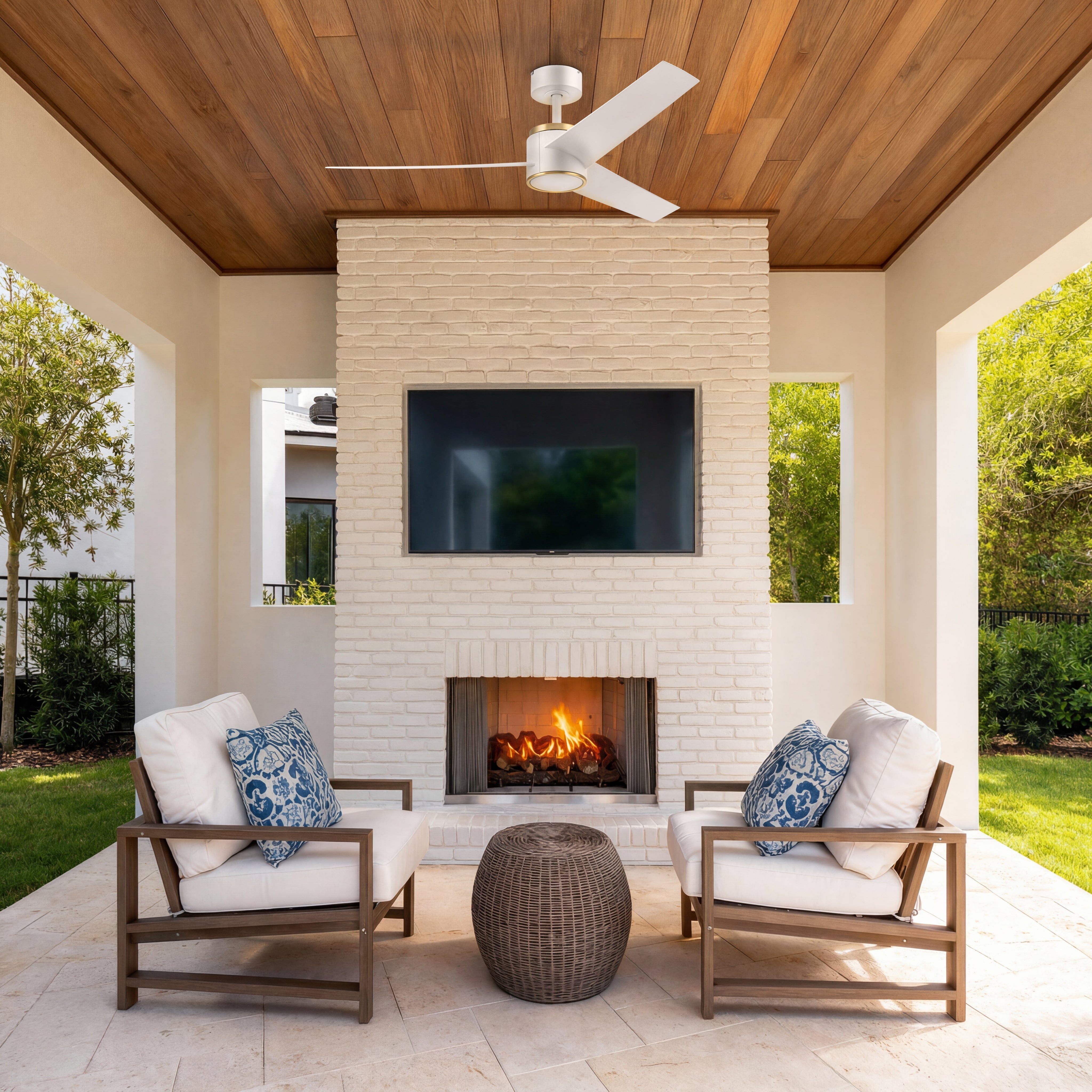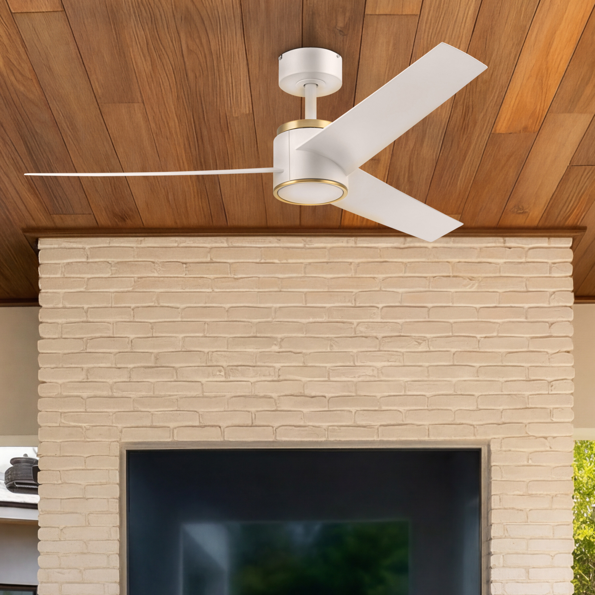 52 Inch Honeywell Altan White with Gold Ceiling Fan with Light and Remote